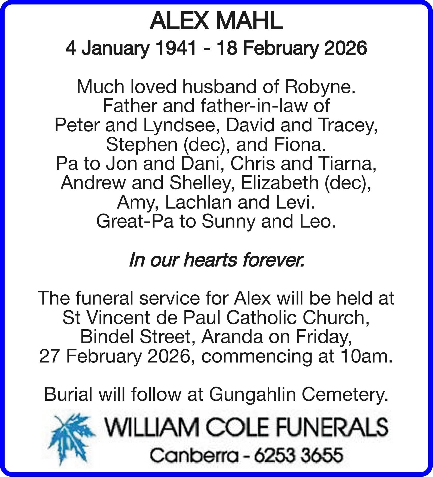 Write your message here and it will be compiled and forwarded on to the family