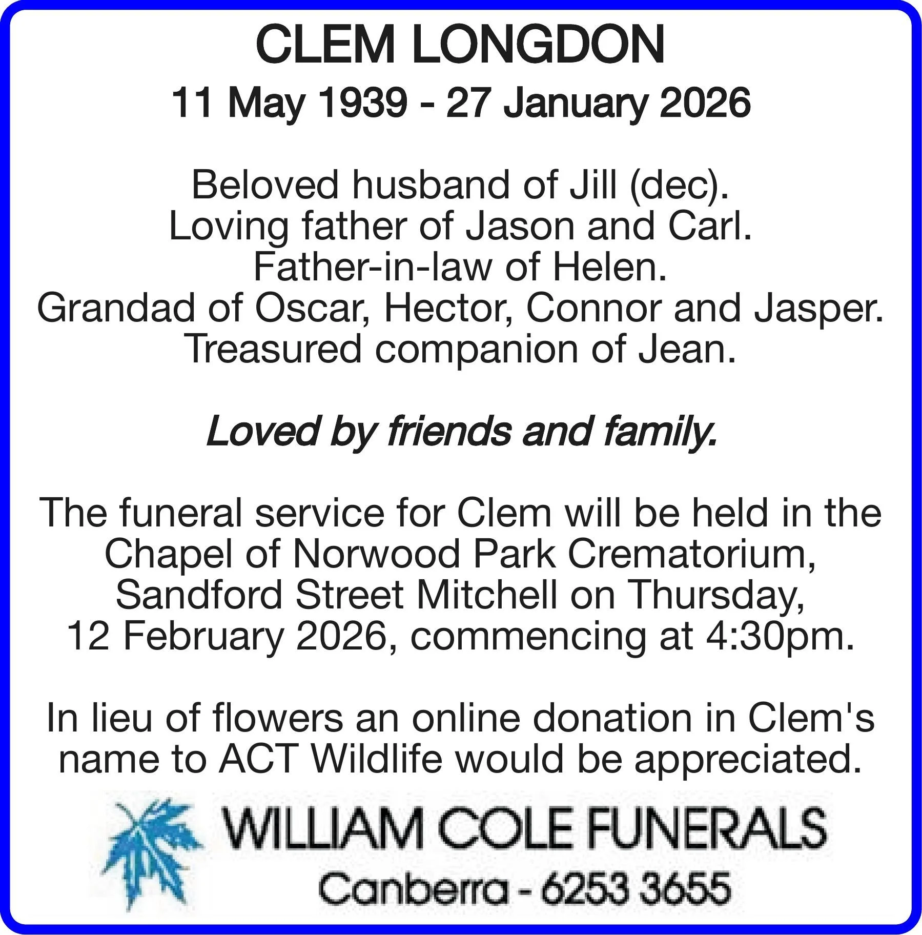 A donation to ACT Wildlife in Clem’s name would be appreciated.
