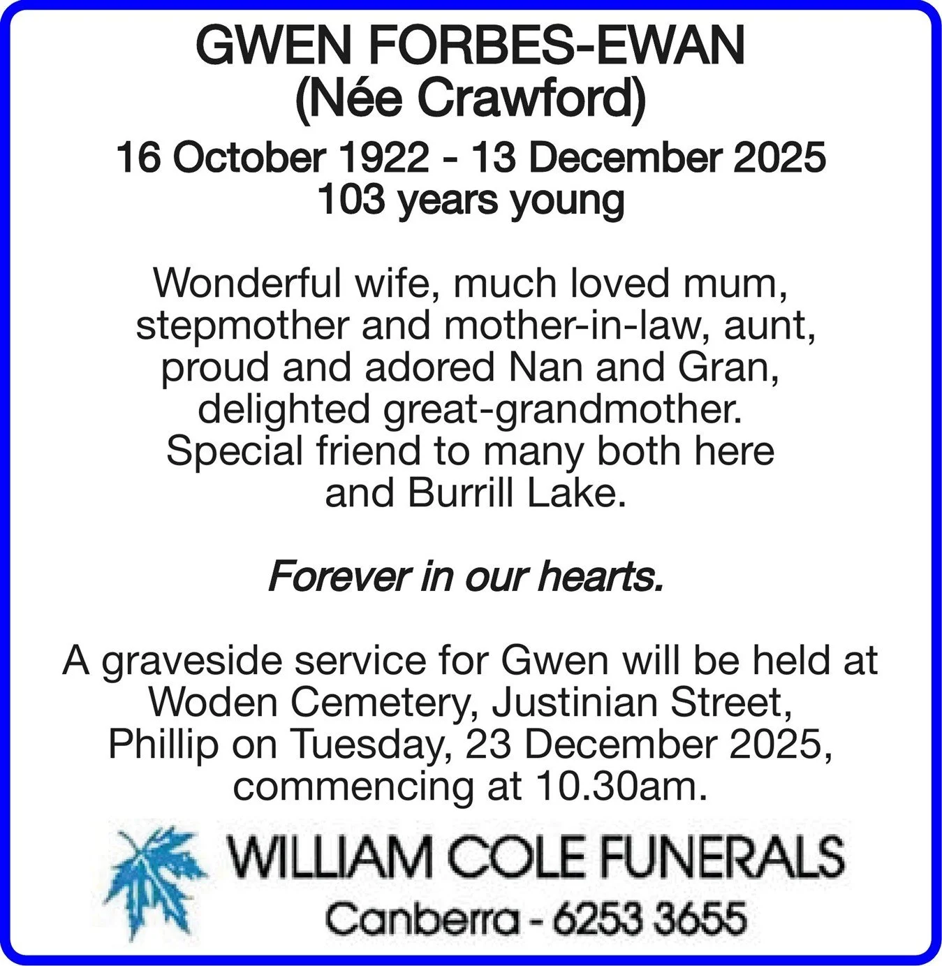 • Woden Cemetery Justinian Street Phillip, ACT, 2606 Australia (map)