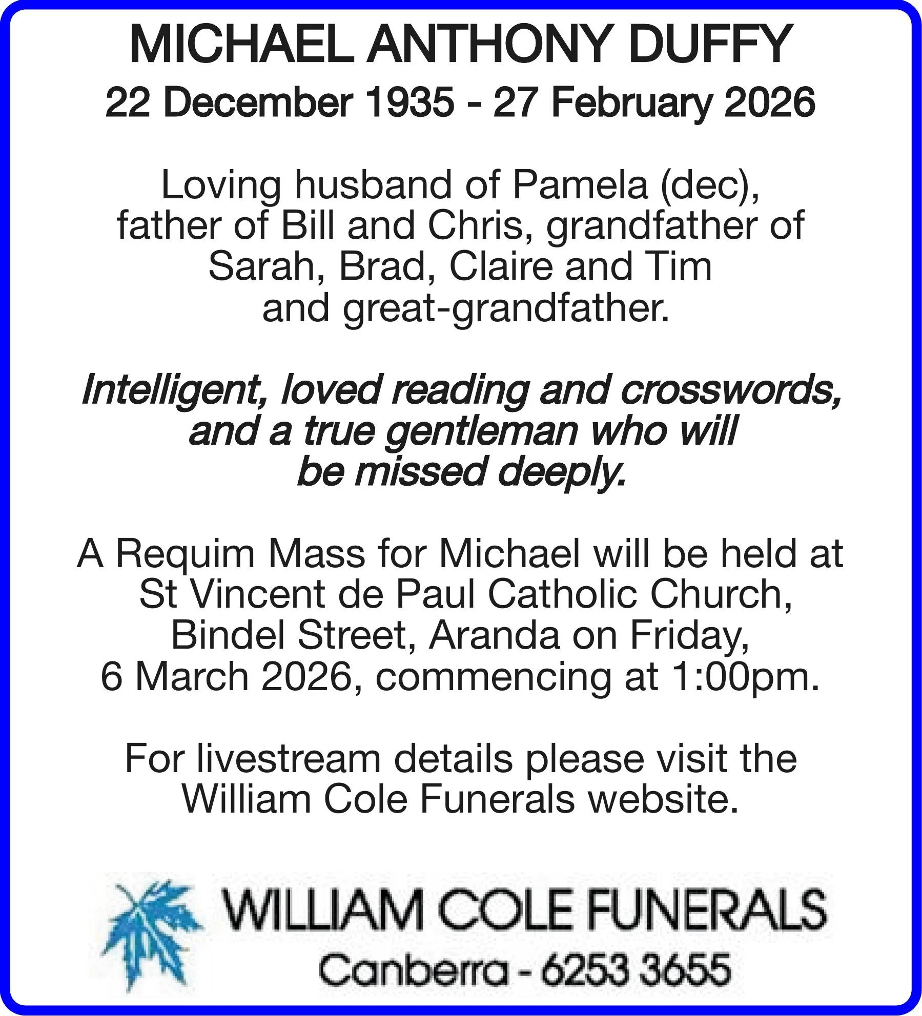 Write your message here and it will be compiled and forwarded on to the family