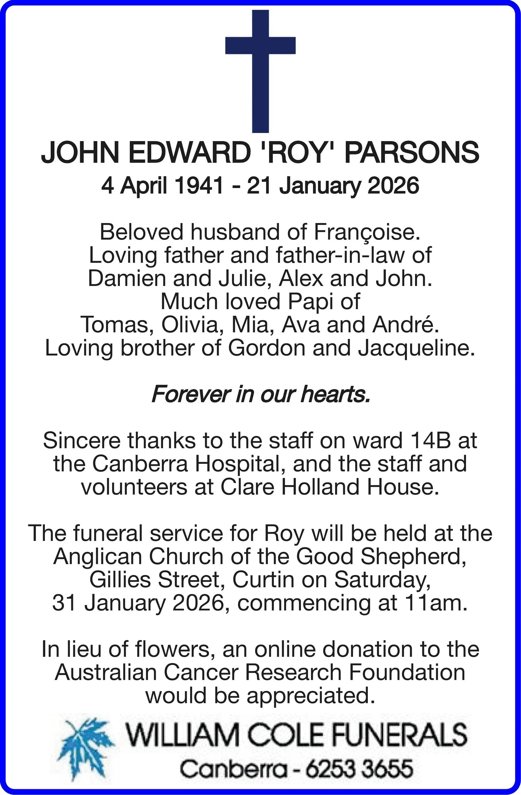 In lieu of flowers, a donation to Australian Cancer Research Foundation would be appreciated. Your support helps ACRF provide world-class scientists with the technology, equipment, and infrastructure they need to develop better prevention, earlier detection, and more effective treatment across all cancer types.