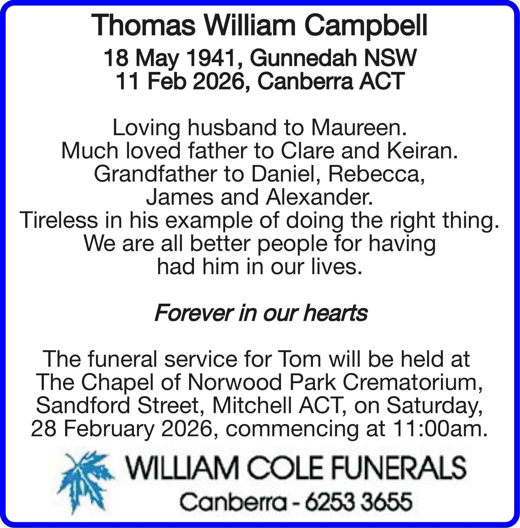 Write your message here and it will be compiled and forwarded on to the family